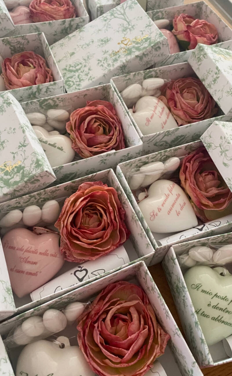 Da Inventitina, ogni bomboniera è un'opera d'arte creata con passione. La nostra accurata selezione di materiali per il confezionamento, la scelta meticolosa degli abbinamenti di colori e l'eccellenza dei nostri confetti di ottima qualità, rendono ogni pezzo davvero speciale. Vogliamo che tu sia incantata dal confezionamento, che evoca un mix di profumi e emozioni indimenticabili.