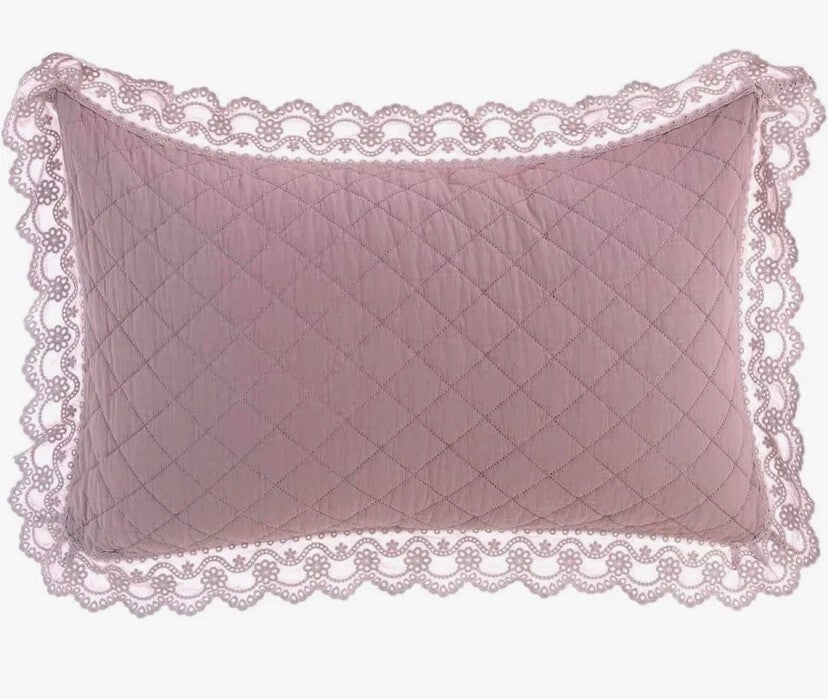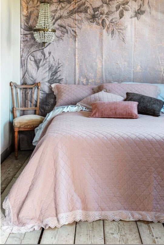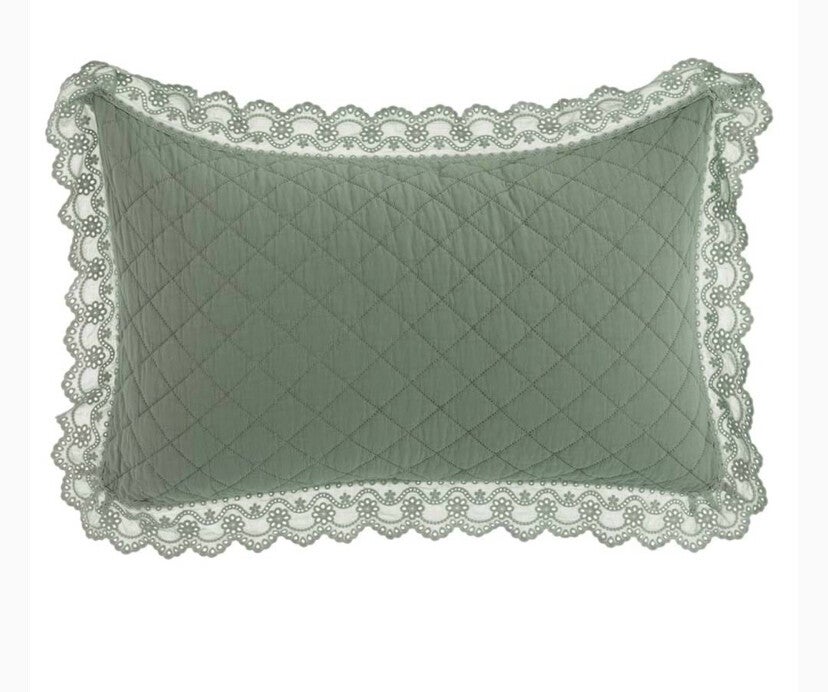 Trapunta matrimoniale verde salvia oppure rosain microfibra trapuntata con gala in pizzo sangallo. Include 2 copriguanciali coordinati.