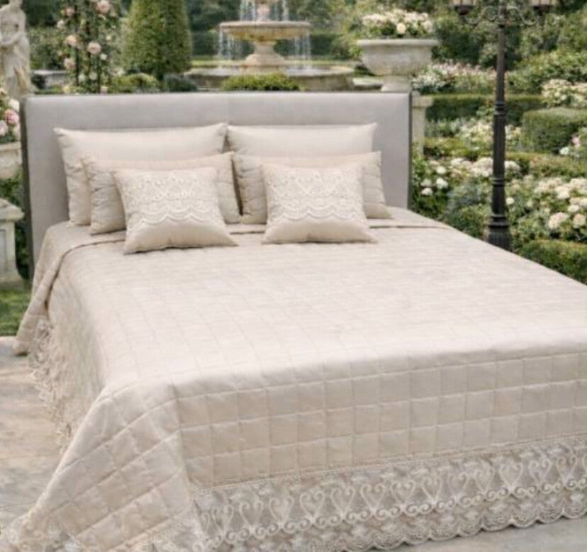 Tapuntino matrimoniale in raso con pizzo rebrode' mel colore panna inclusi 2 cuscini arredo mis 260x270cm brand : Laura Blasi